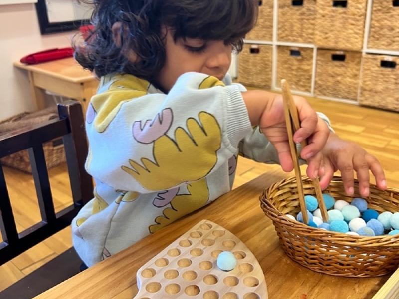 Our modern culture contains a multitude of distractions: video games, computers, television, and any number of sports- or arts-related extra activities. Combined, these can create an overabundance of sensory stimulation. Maintaining a calm, controlled, prepared Montessori environment and a clear approach to reducing distractions and sensory overload is an important task of the Montessori teachers. This directed approach is designed to foster the power of concentration in children, so that they may grow to become happy, independent, and fulfilled adults!